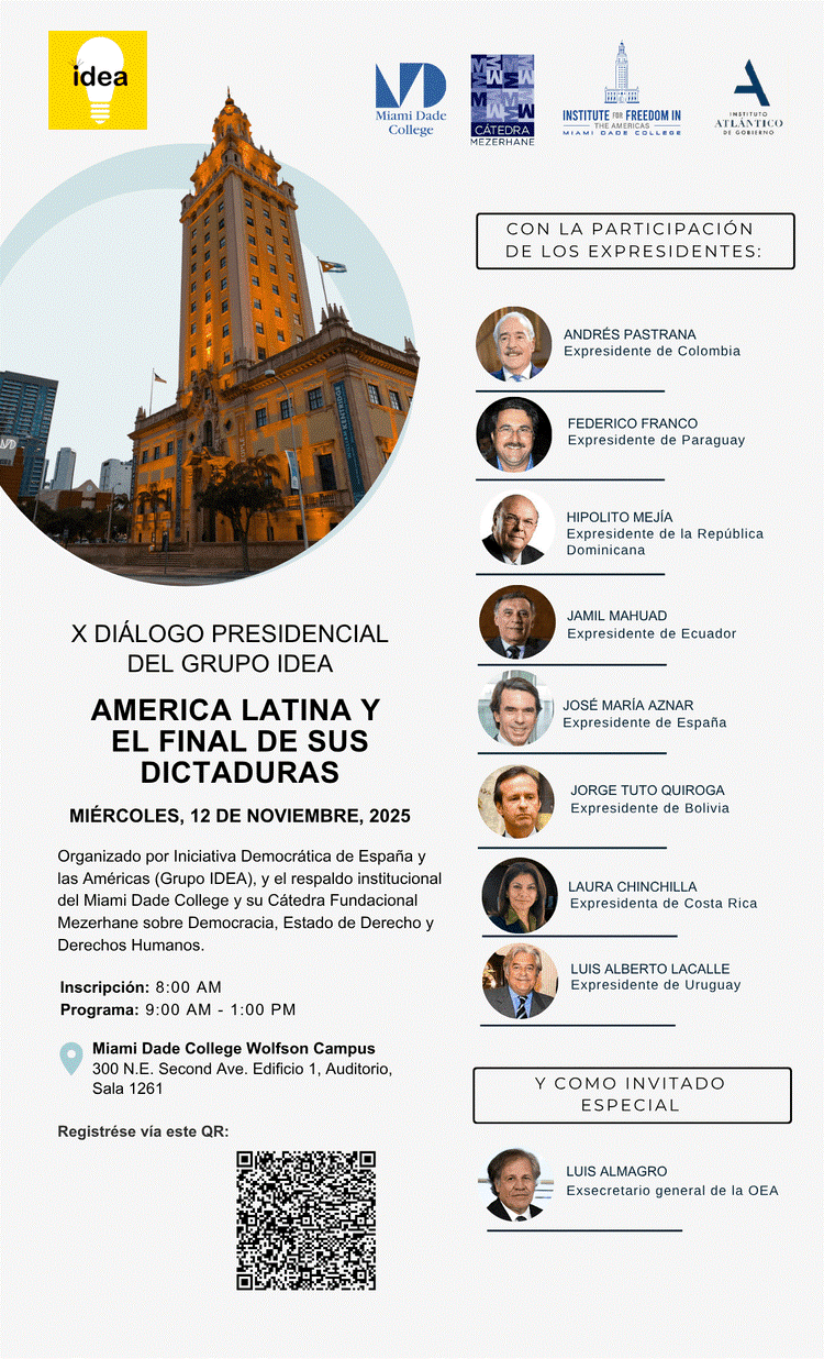 José María Aznar, presidente del IADG, ha participado en Miami en la inauguración del IX Diálogo Presidencial del grupo IDEA, Democracia de ciudadanos y migraciones, coorganizado por el Miami Dade College (MDC), la cátedra Mezerhane y el Instituto Atlántico de Gobierno (IADG).